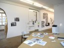 ExRotaprint Timeline 1958 until 2106: cutting through the wall, drawings, photographs of the tenants, slide projections of construction sites, table with info material