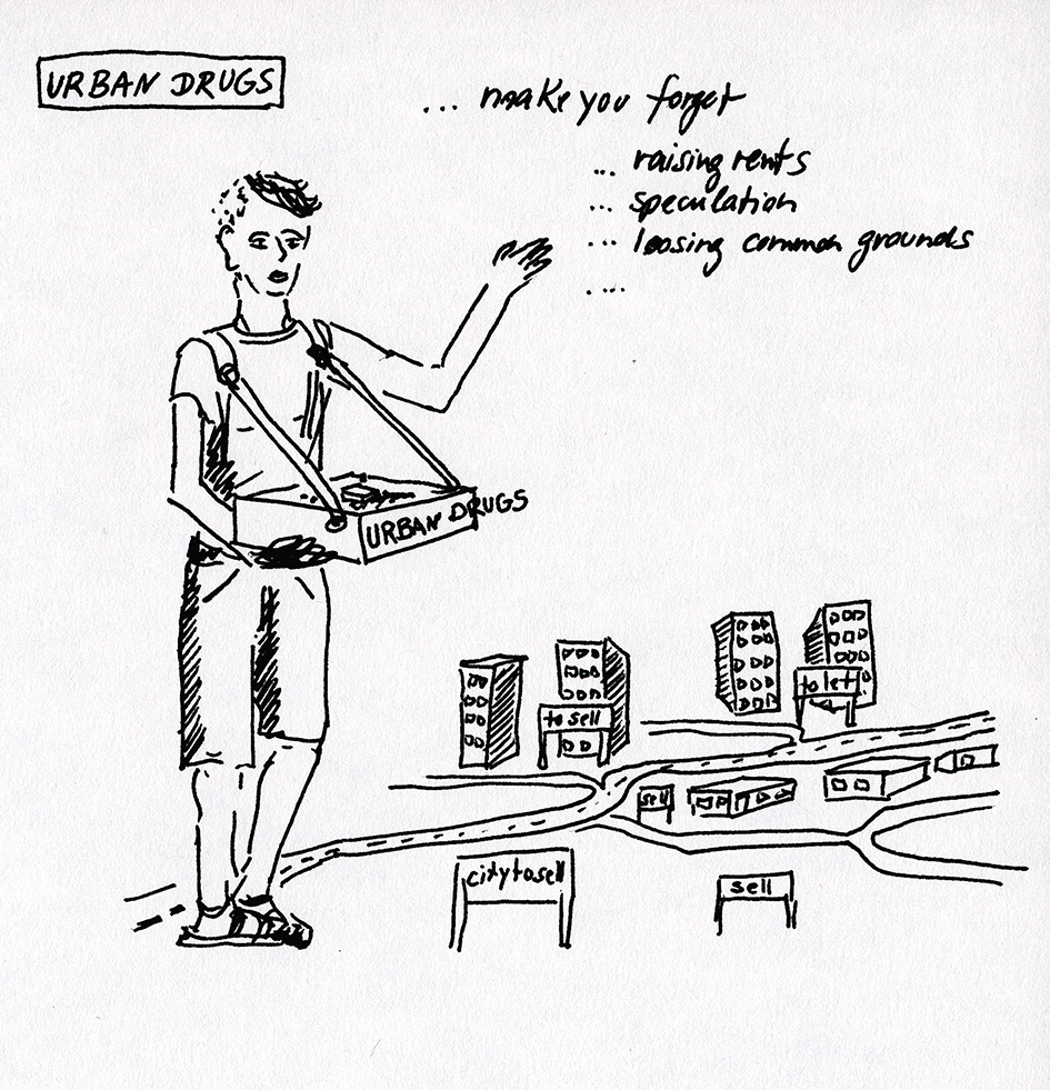 “Urban drugs … make you forget raising rents, speculation, loosing common ground” 2015