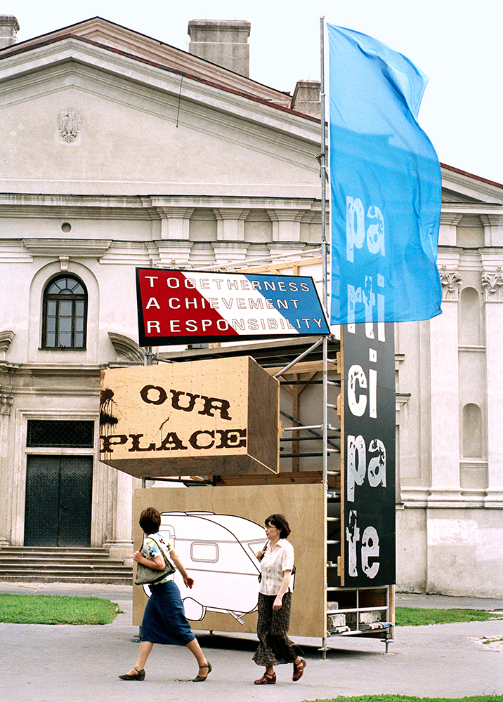 Daniela Brahm The New Town, 2006 scaffolding, paintings, a flag, approx. 8 x 3.6 x 1.6m