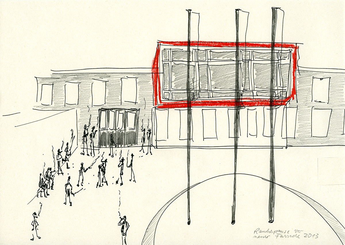 “Raucherpause vor neuer Fassade / cigarette break in front of newly restored façade” 2013